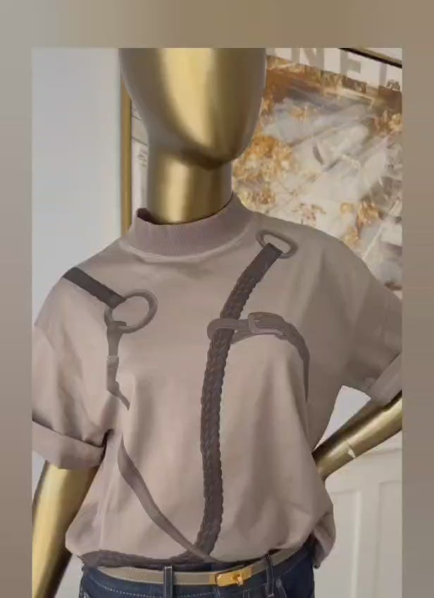 NEW Hermès "Coaching Remix" Boxy-fit T-shirt brun fumé - Size 36