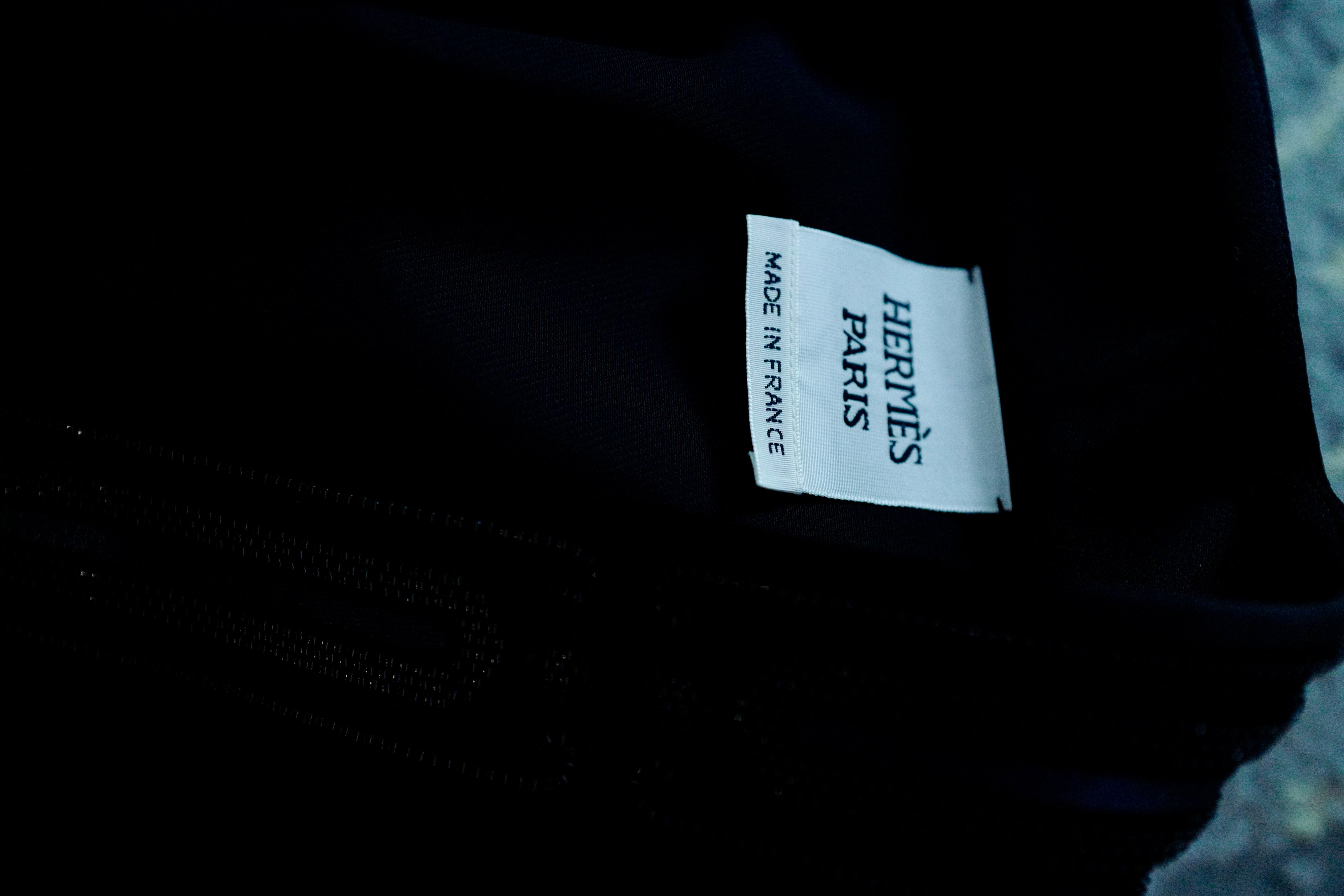 The embroidery likely features Hermès’ signature motifs—whether it’s equestrian-inspired elements, floral patterns, or abstract designs—that give it a unique, artisanal quality.