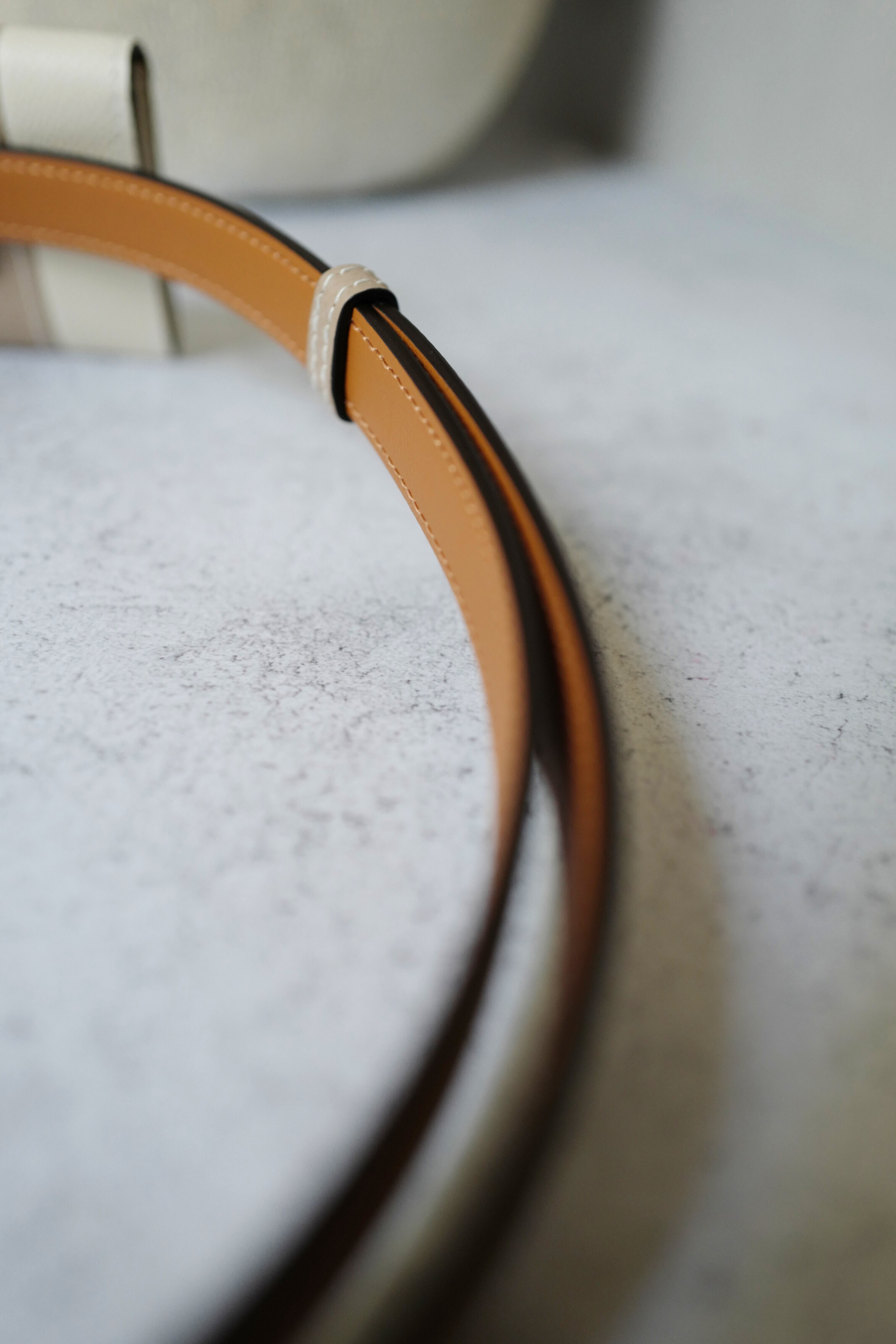 The Hermès Kelly Pocket Bayadère 18 Belt in Trench and Craie is a modern reinterpretation of the House’s timeless elegance. Designed with a slim 18 mm profile, it combines refined craftsmanship with versatile functionality. The harmonious contrast of Trench and Craie tones is elevated by the Bayadère striped pouch, creating a chic accessory that embodies the signature Hermès aesthetic.