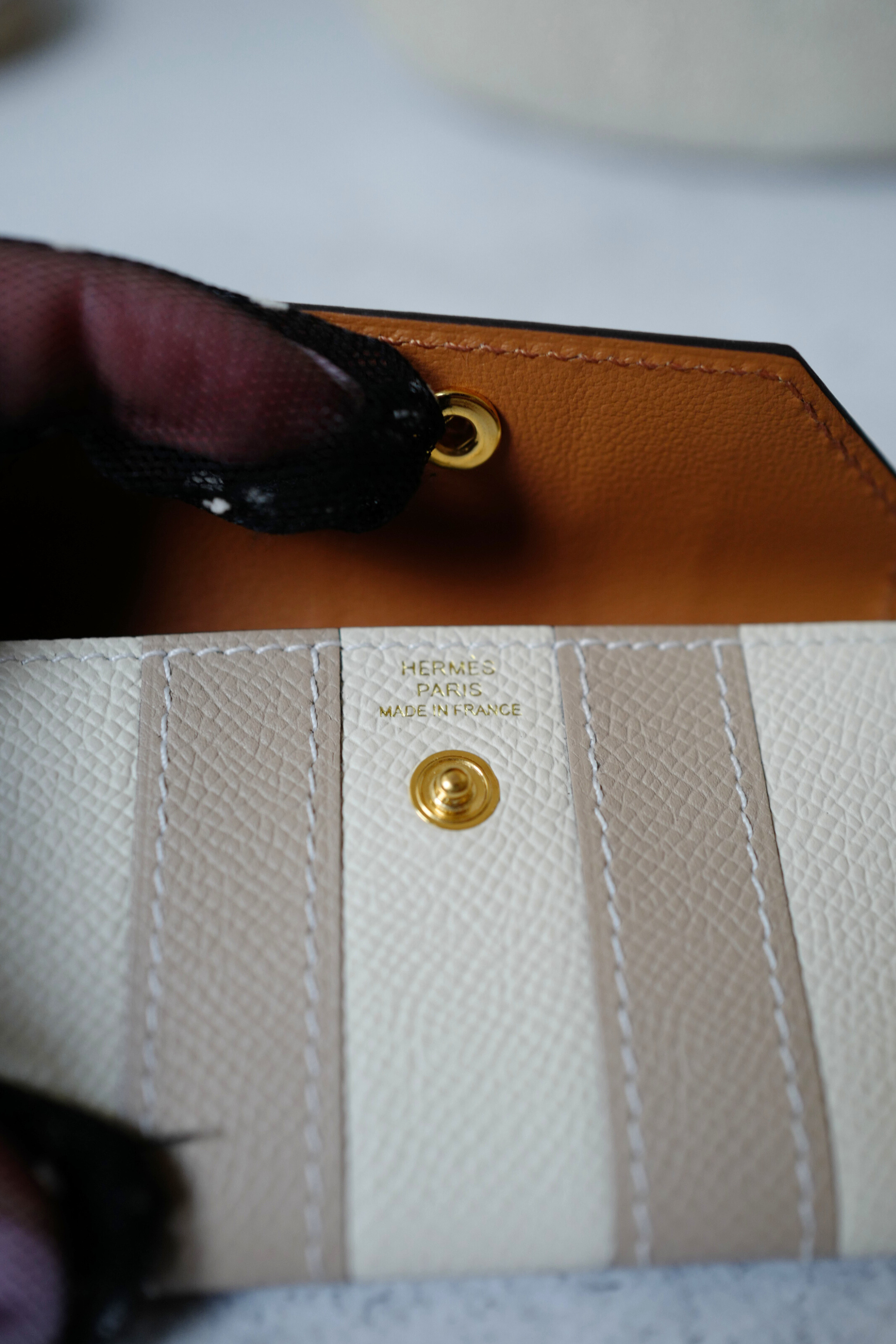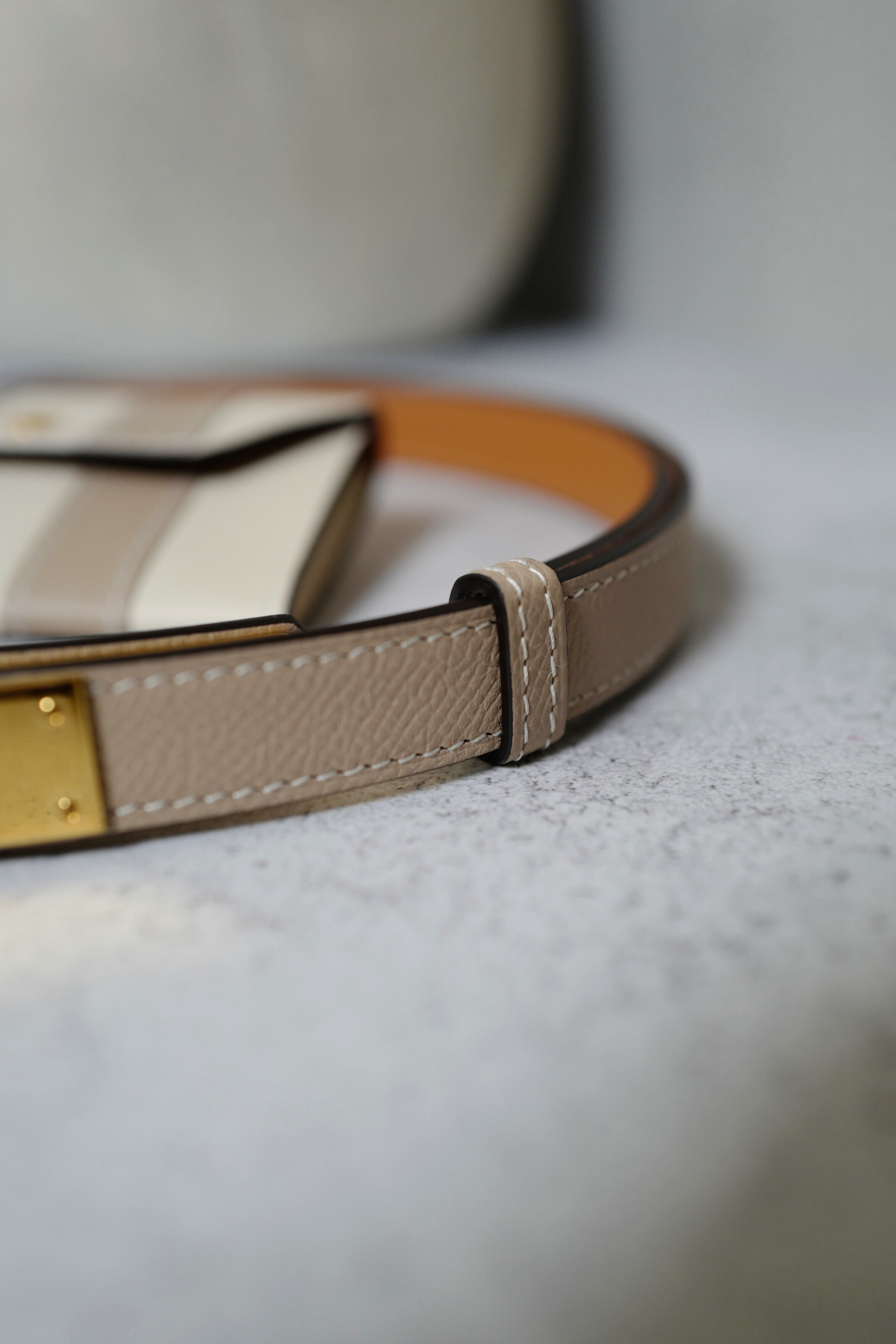 NEW Hermès Kelly Pocket 18 Bayadère Belt Trench/Craie Gold Hardware