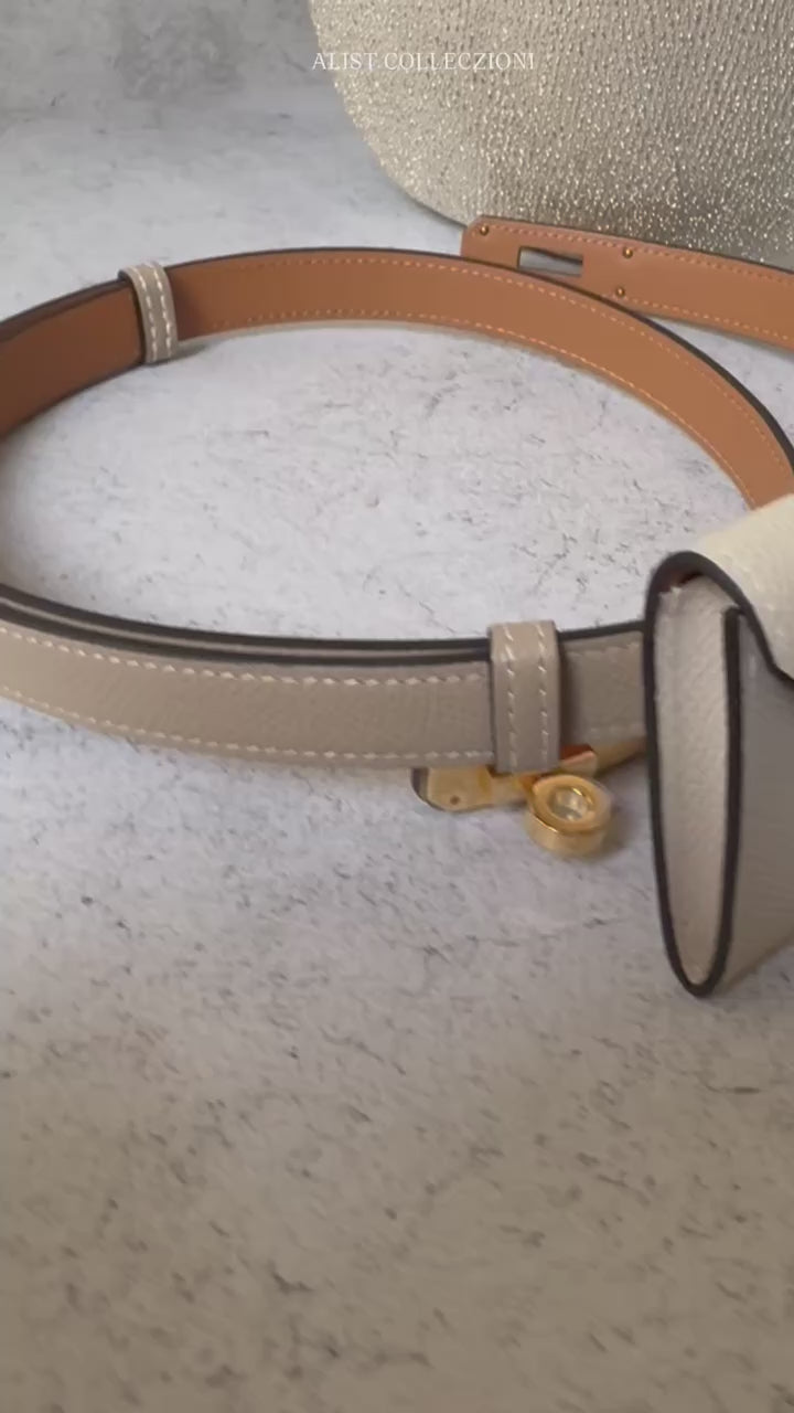 Crafted from durable Epsom calfskin, the belt is paired with a removable pocket in matching striped leather for carrying small essentials with ease. The design is completed with the iconic Kelly turn-lock closure in radiant gold hardware, a symbol of sophistication and enduring style. Adjustable in length, it can be worn at the waist or hips, making it suitable for both casual and elevated looks.