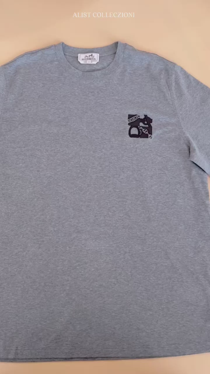 This Hermès men’s gray t-shirt offers a casual yet elegant look with the signature touch of Hermès luxury. Made from soft, high-quality cotton, it provides a light and comfortable feel throughout the day. The small Hermès logo on the chest adds an exclusive but subtle accent.
