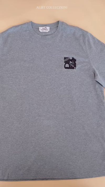 NEW Hermès Men’s T-Shirt Gray Cotton Short Sleeve Size L Logo Casual Top
