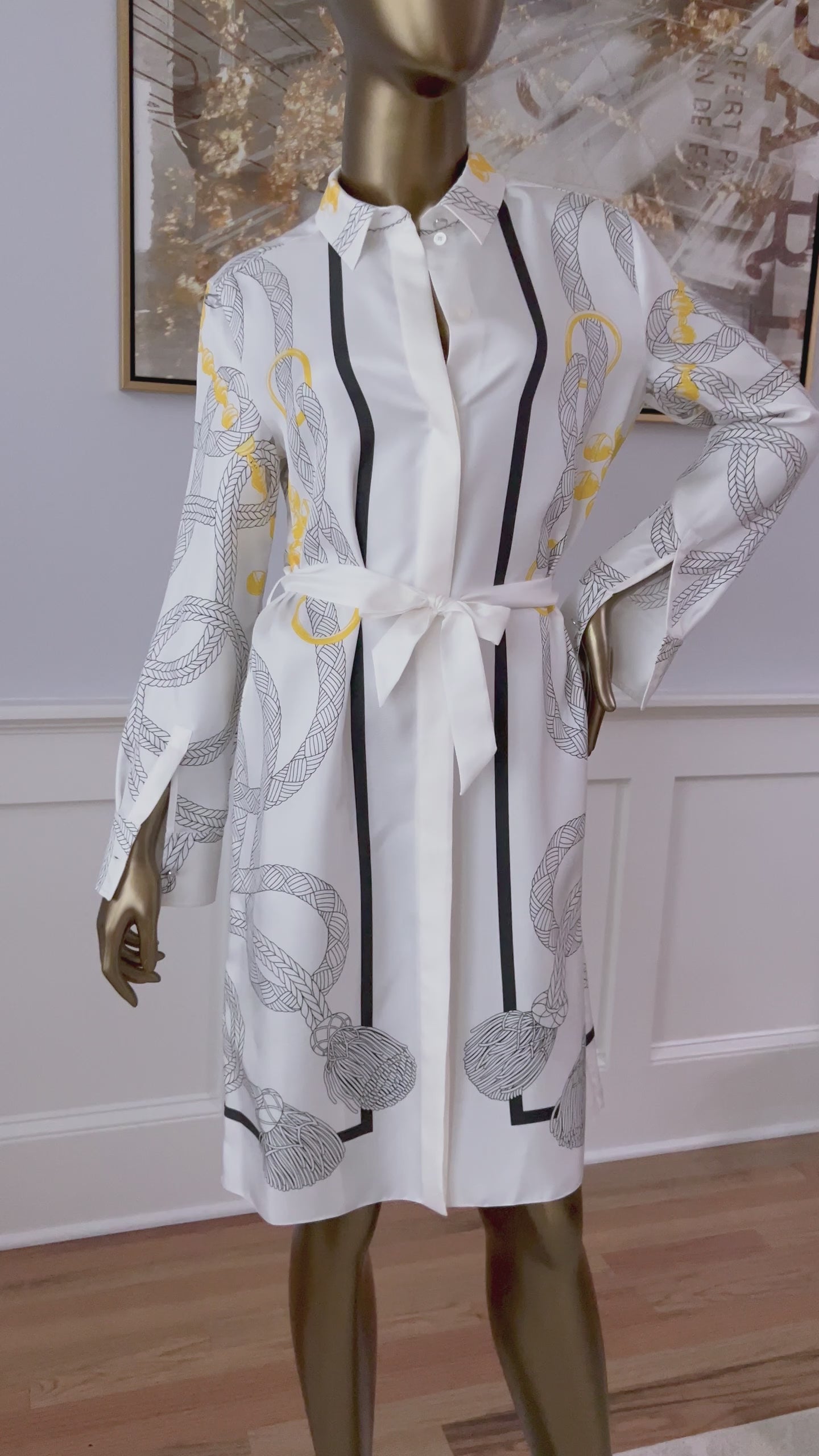 NEW Hermès "Palefroi Remix" Shirt Dress Blanc Nacre Silk Size 36