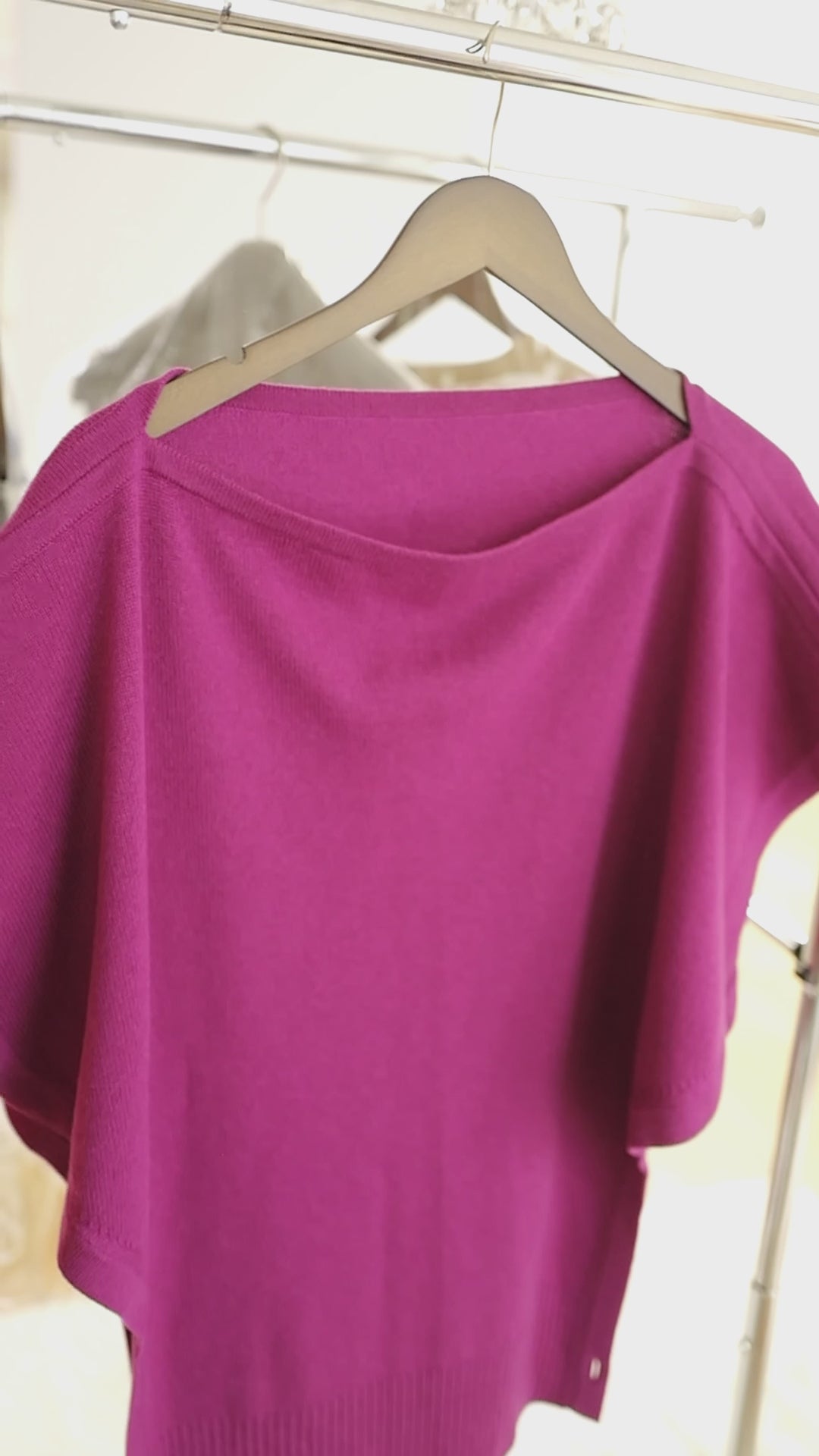 Comes in Anemone colour (purple-ish dark pink), a perfect sweetener to your look. Made with pure fancy cashmere to keep you warm in chilly weather. You will never get tired of this sweater as the design for this sweater is very unique- it can be worn in two ways (long sleeve and short sleeve sweater) as it is seen in the pictures given. As for the long sleeve style, the sweater cut becomes higher - looks like a crop top sweater, as the short sleeve style is more like a normal cut style. You can mix and match this sweater with a pair of jeans for casual or a high-rise skirt for a more formal occasion. I believe this sweater is such a perfect fashion investment in your wardrobe. Grab it fast, because this so-not-ordinary sweater is in a very reasonably good price.