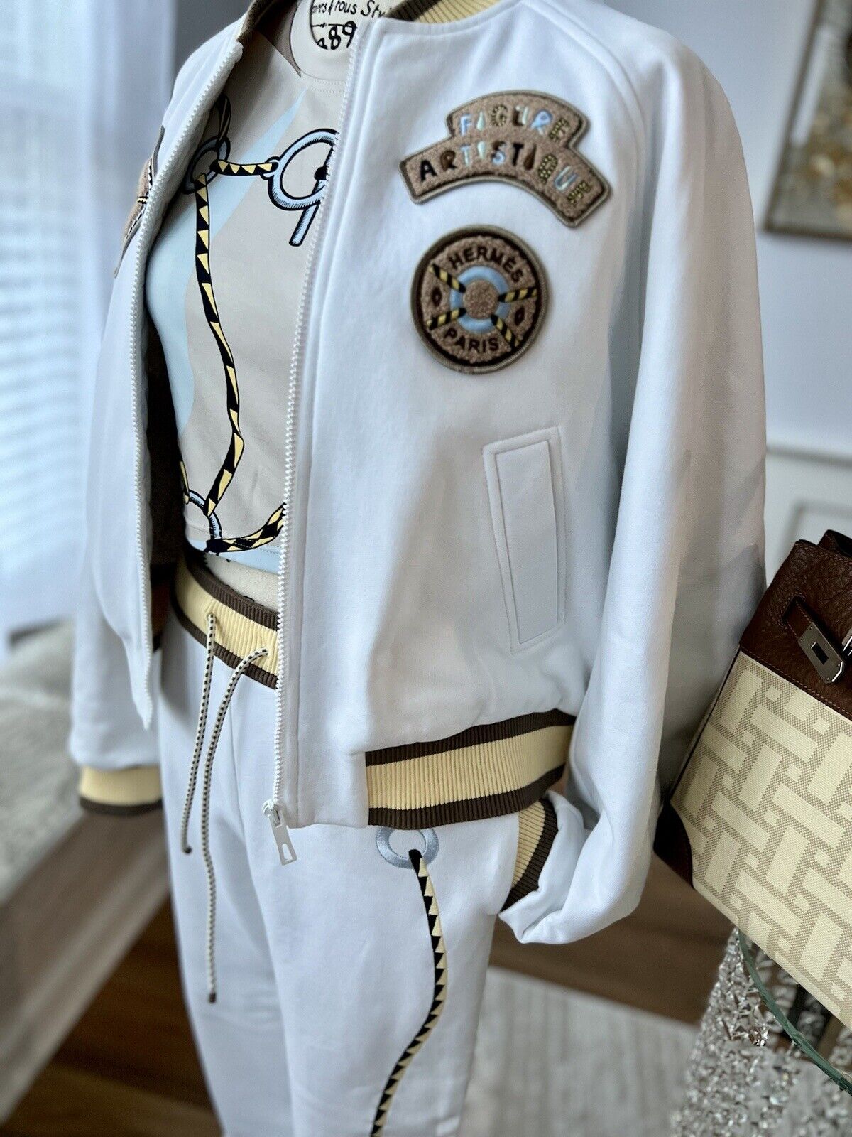 NEW Hermes Varsity Embroidered Jacket Blanc size 40