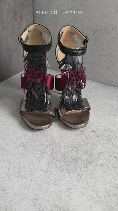Adorned in sparkling sequins, these heels transform ordinary outfits into visual masterpieces. The interplay of textures and colors exudes a bold charm, offering a distinctive allure that complements both evening occasions and special events.