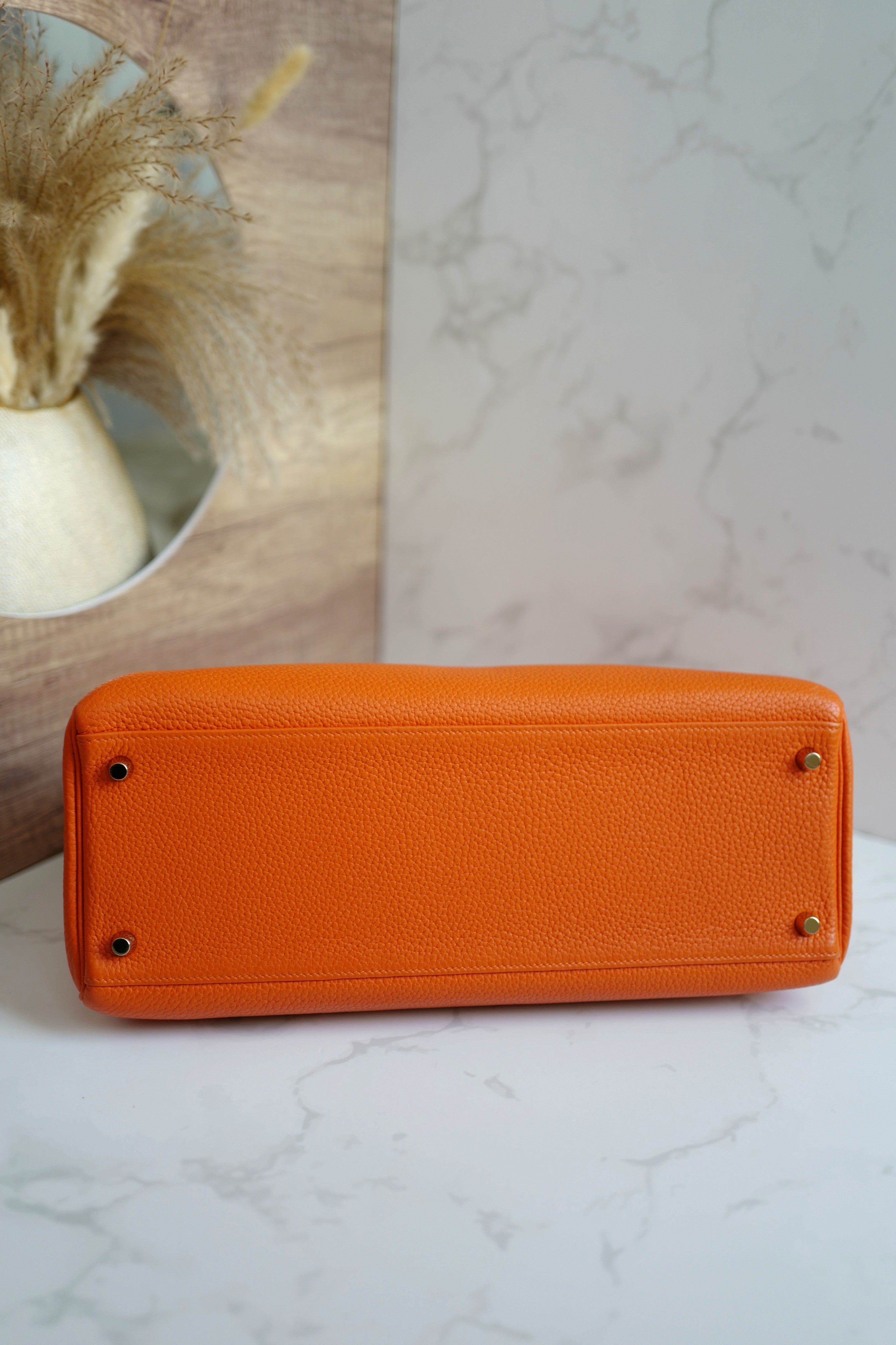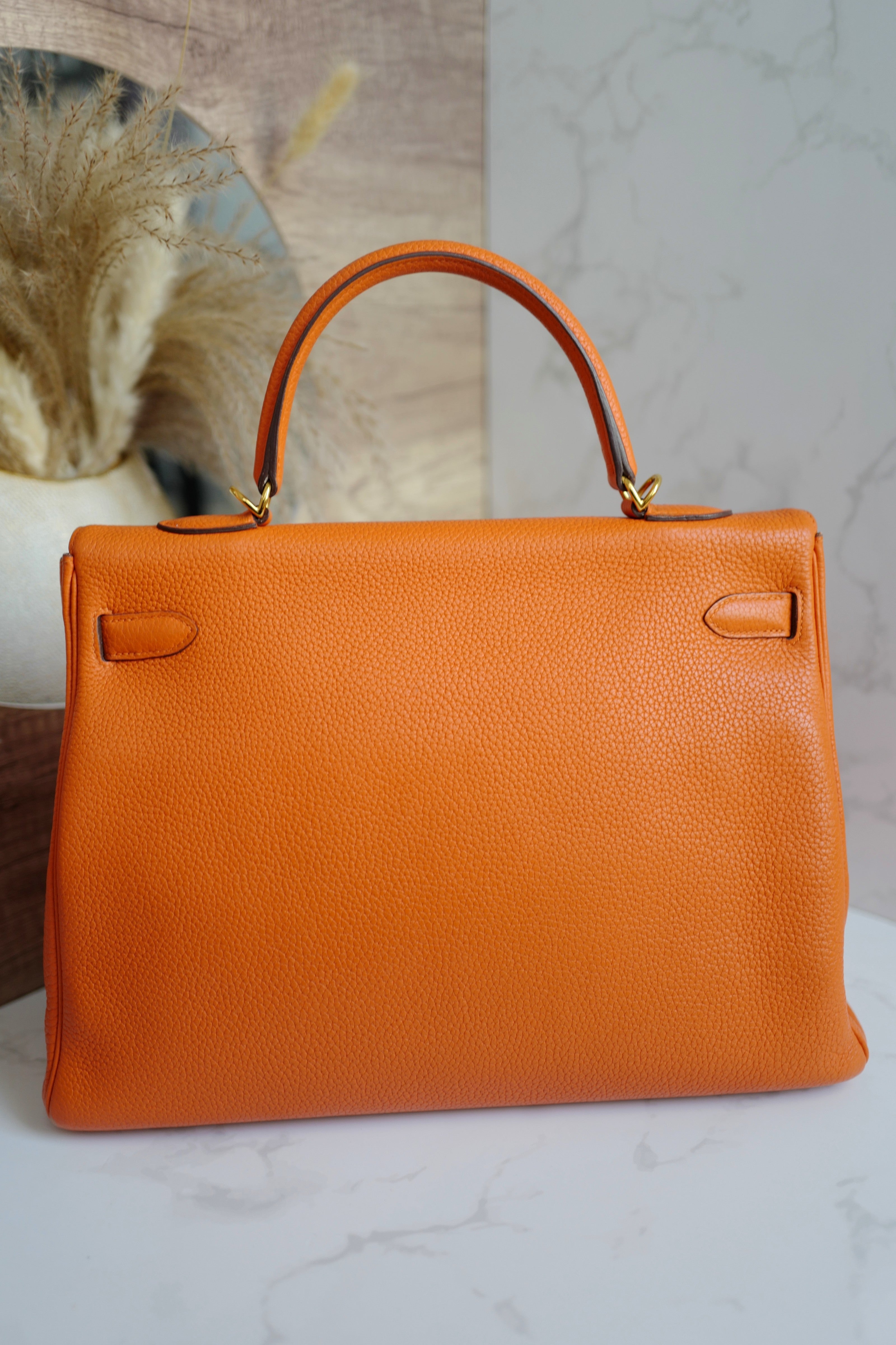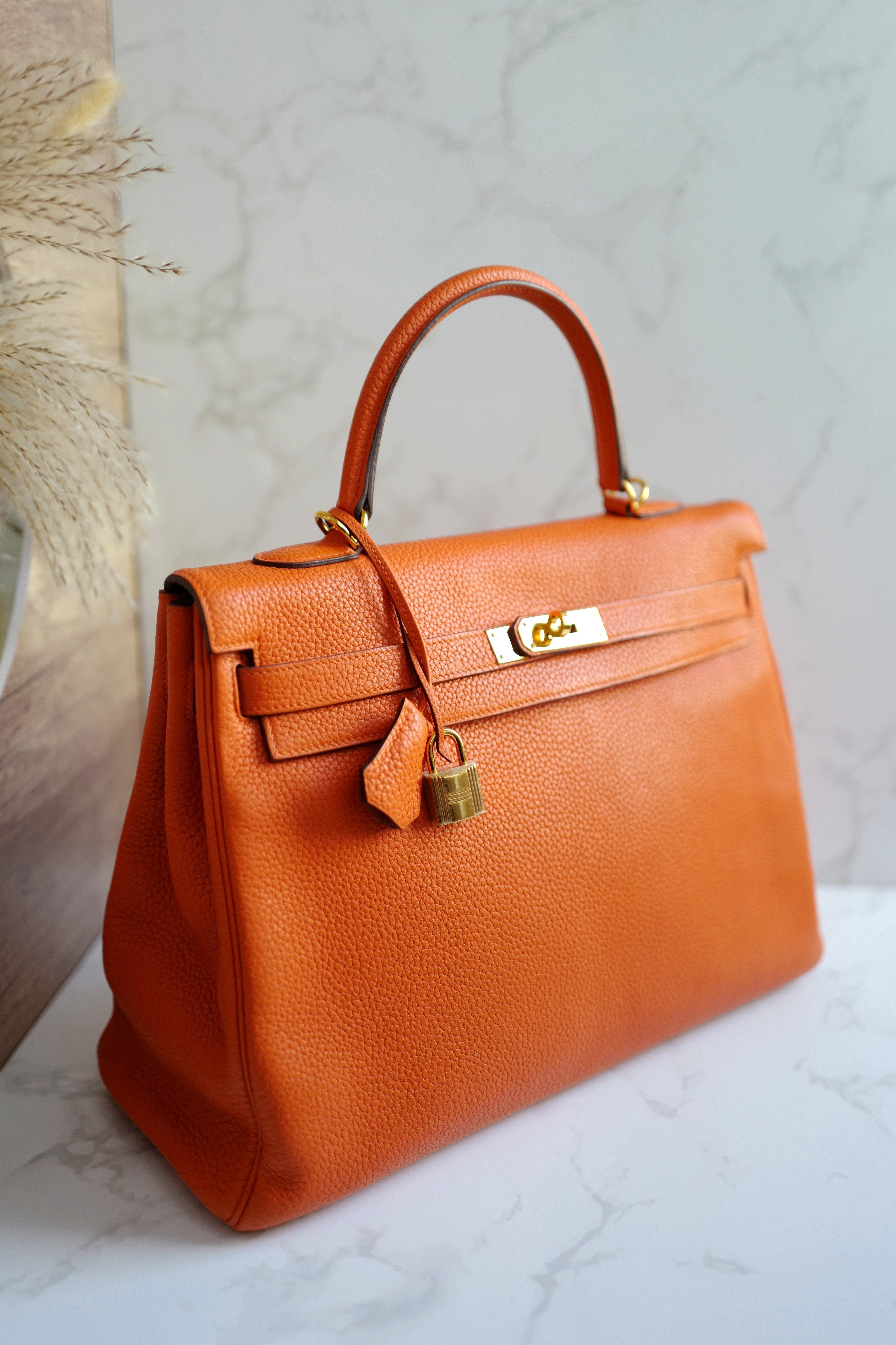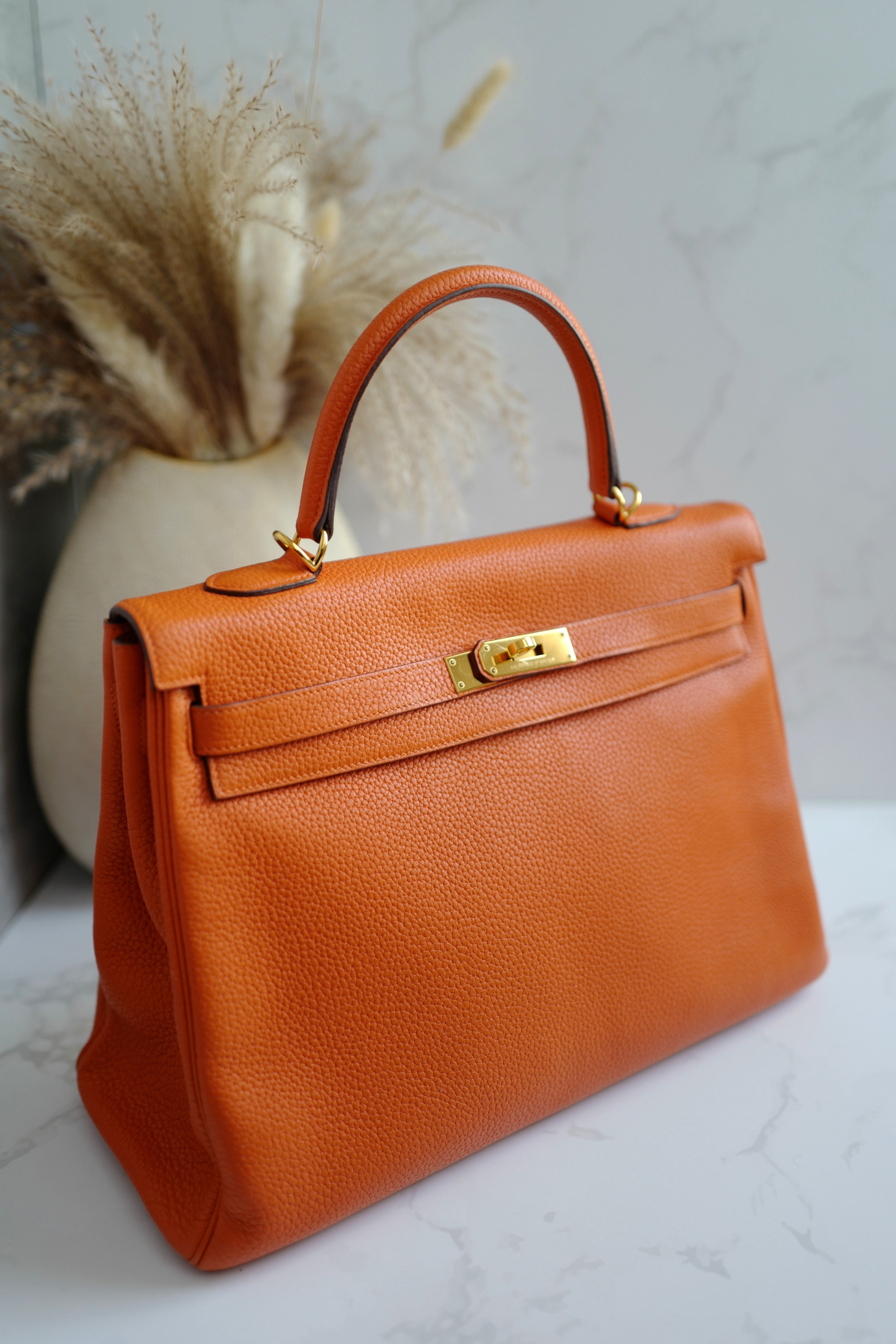 Preowned Hermes Kelly 35 Orange Togo Gold Hardware #P