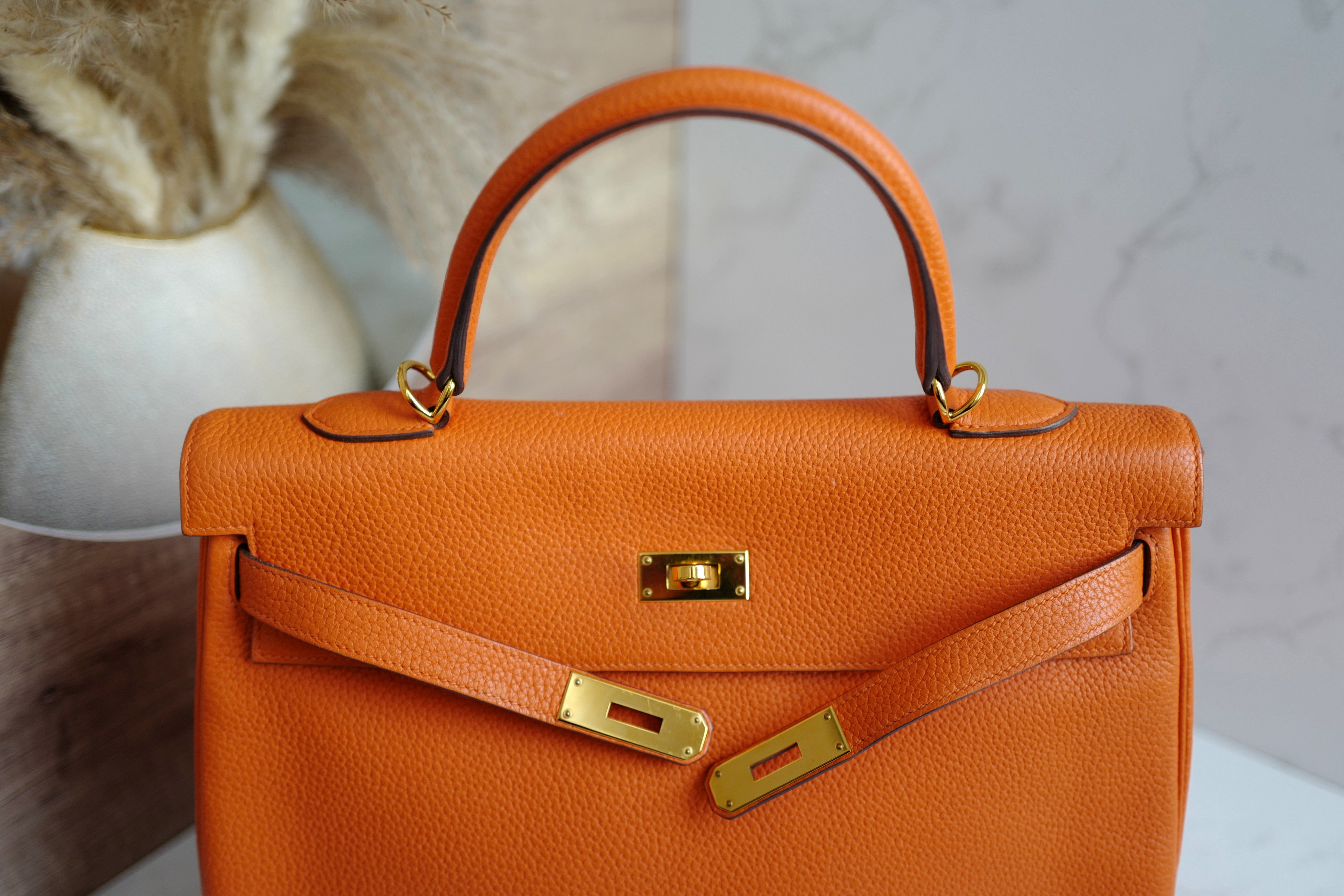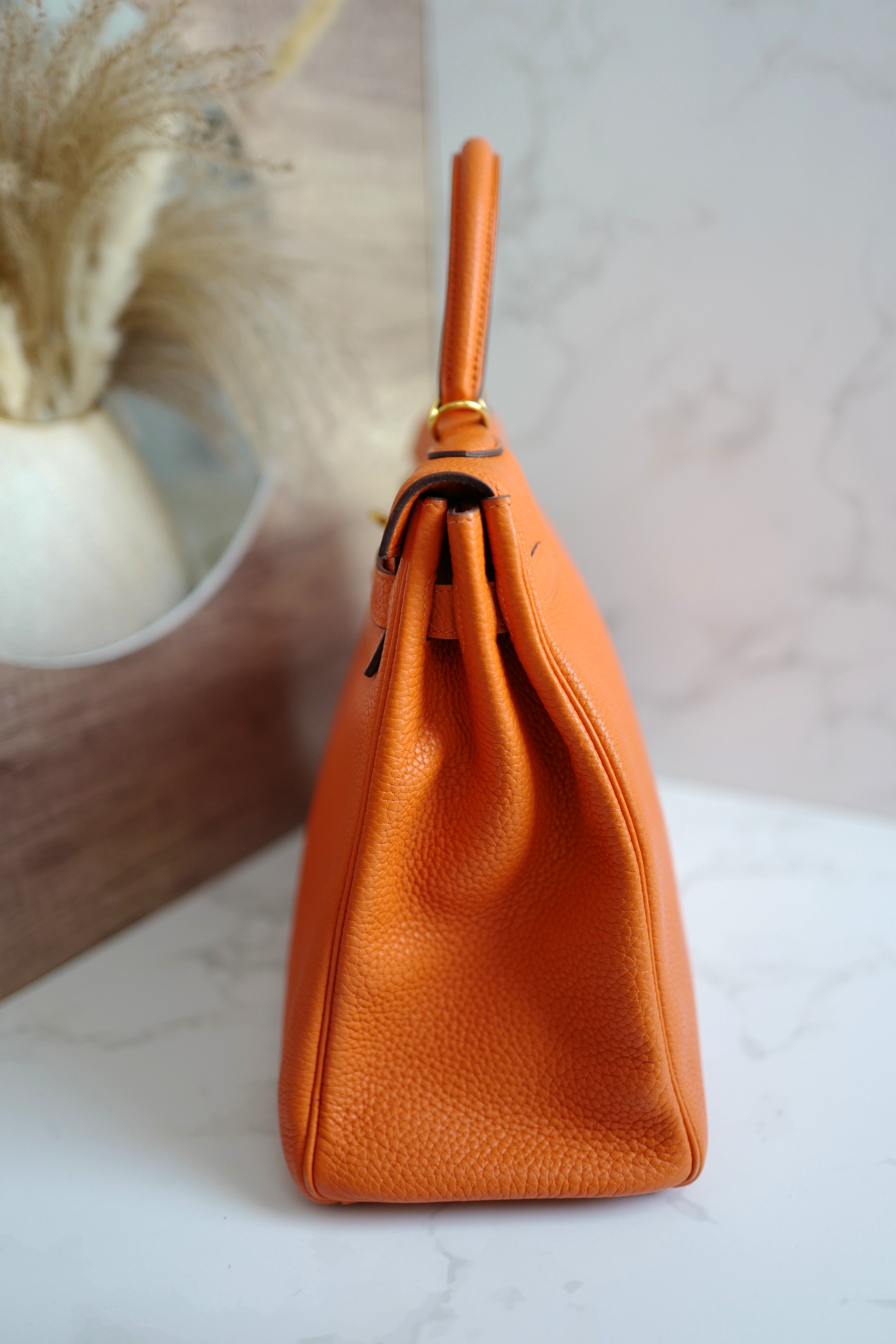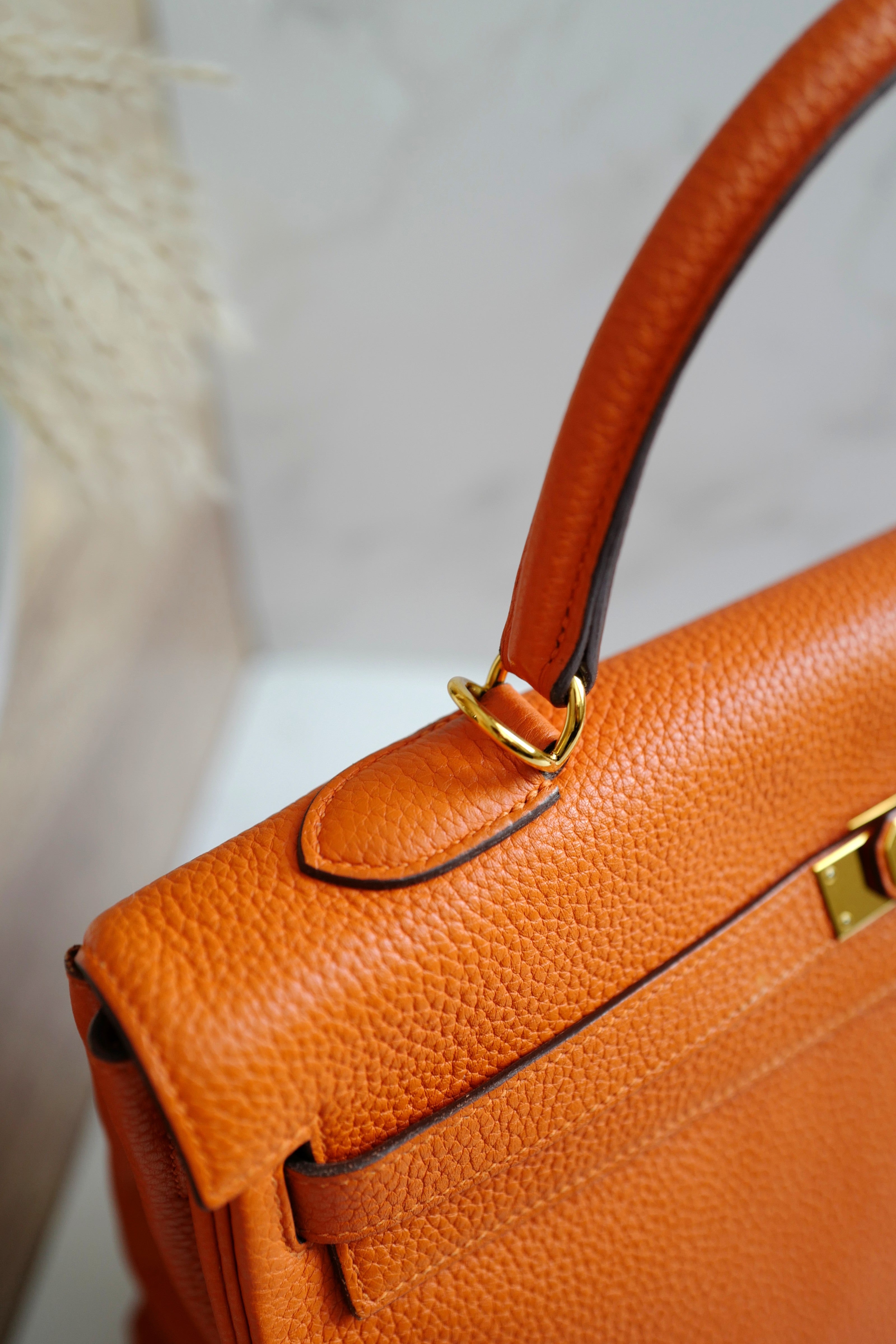 Preowned Hermes Kelly 35 Orange Togo Gold Hardware #P