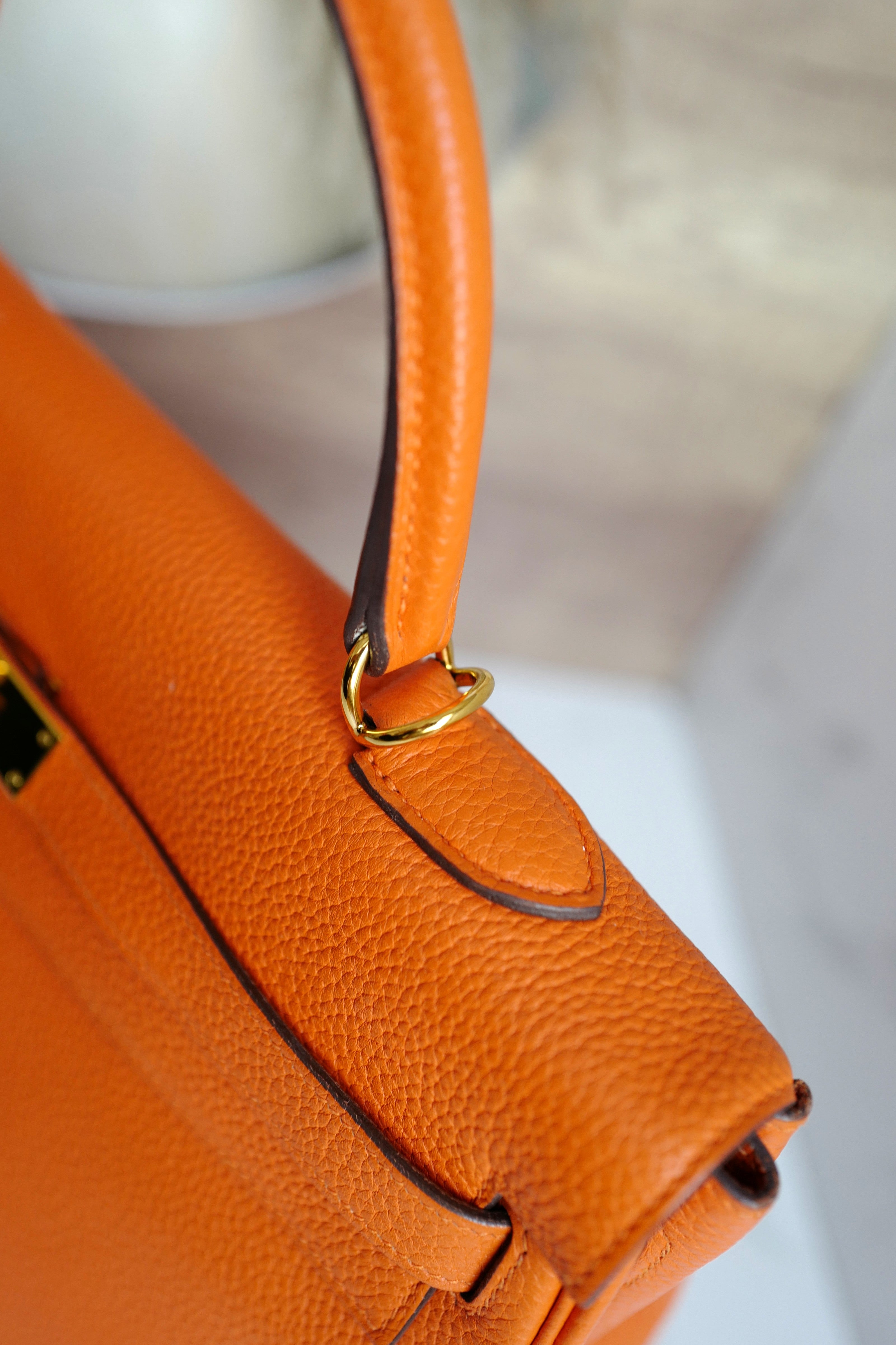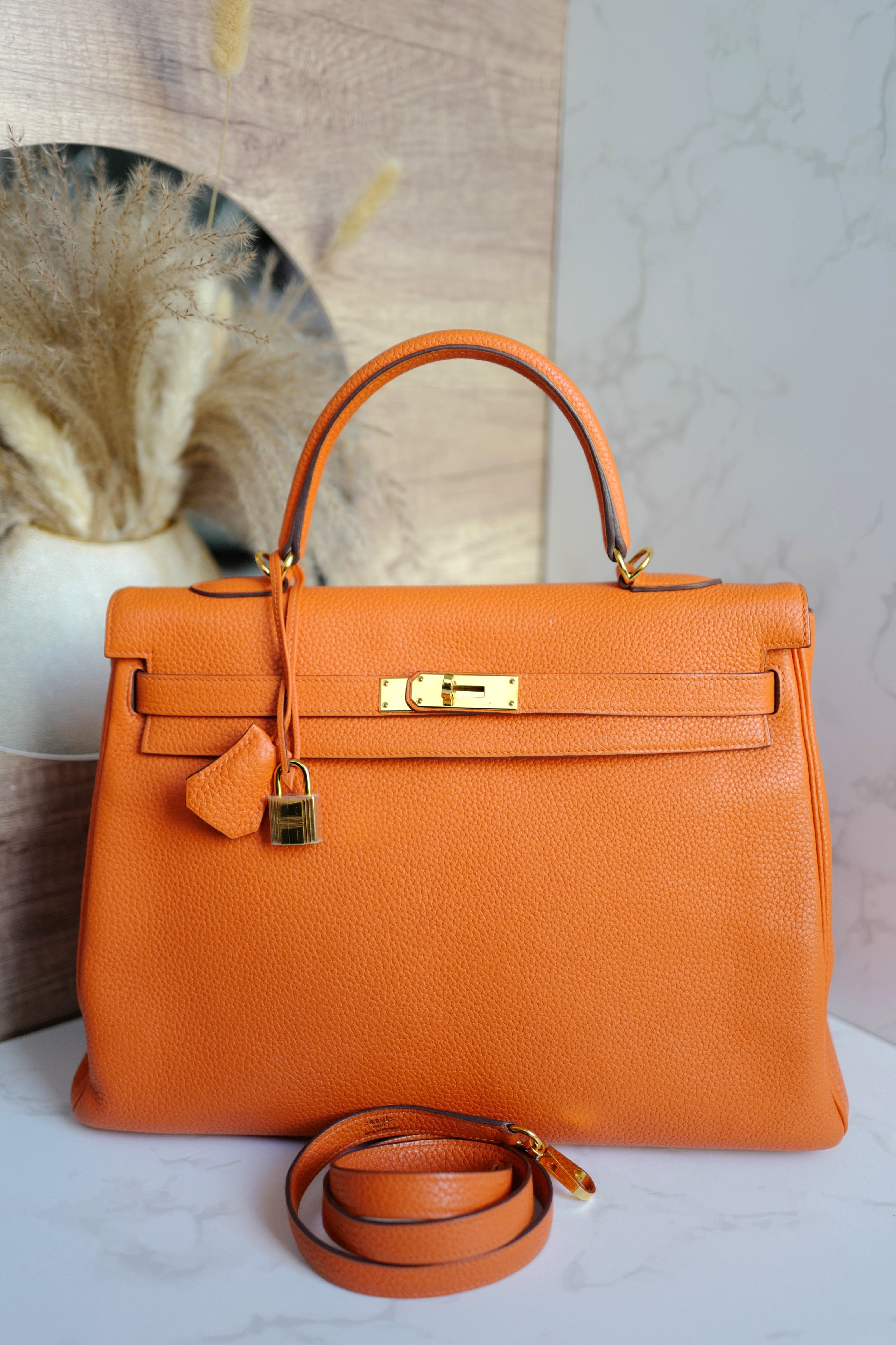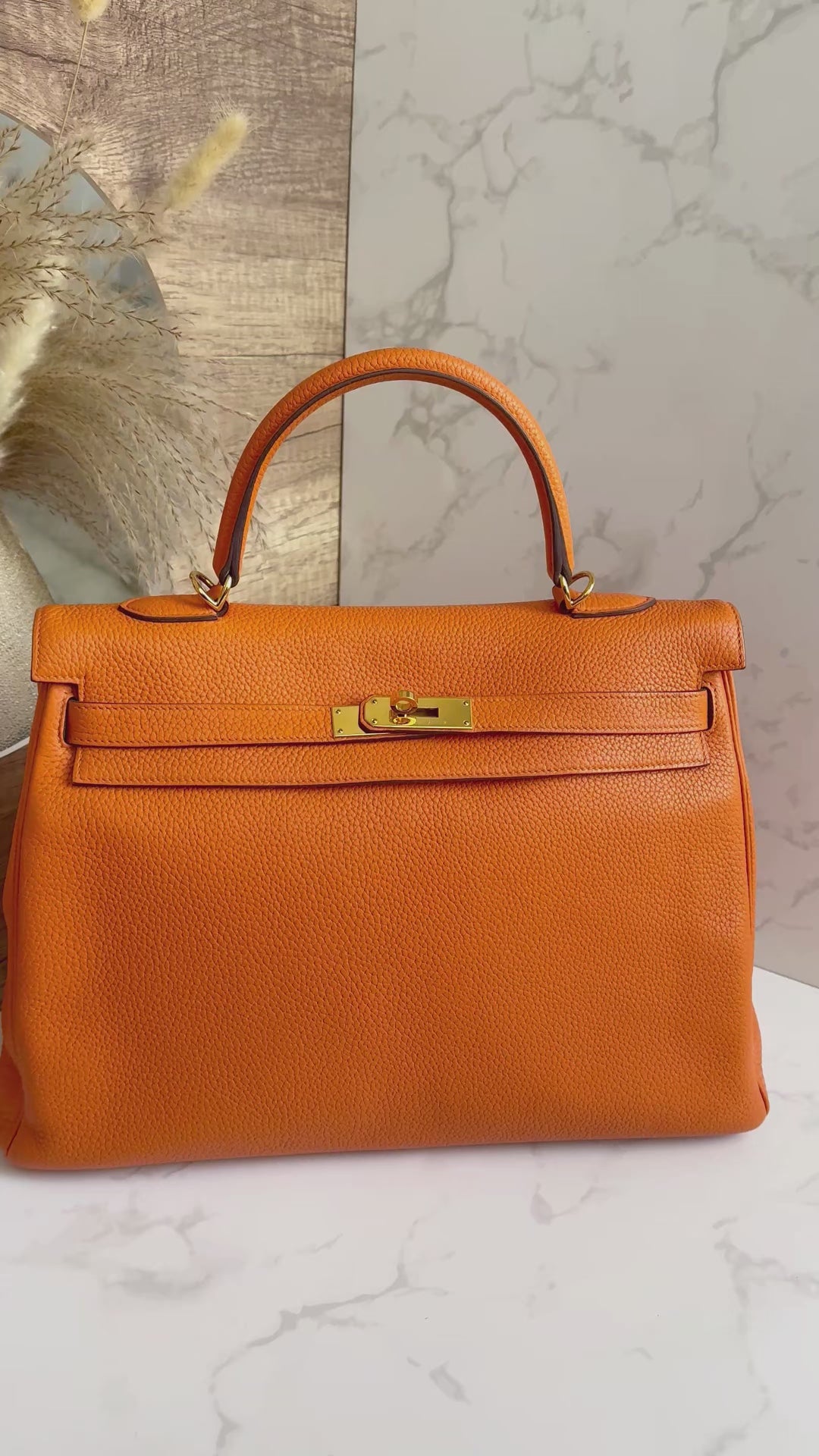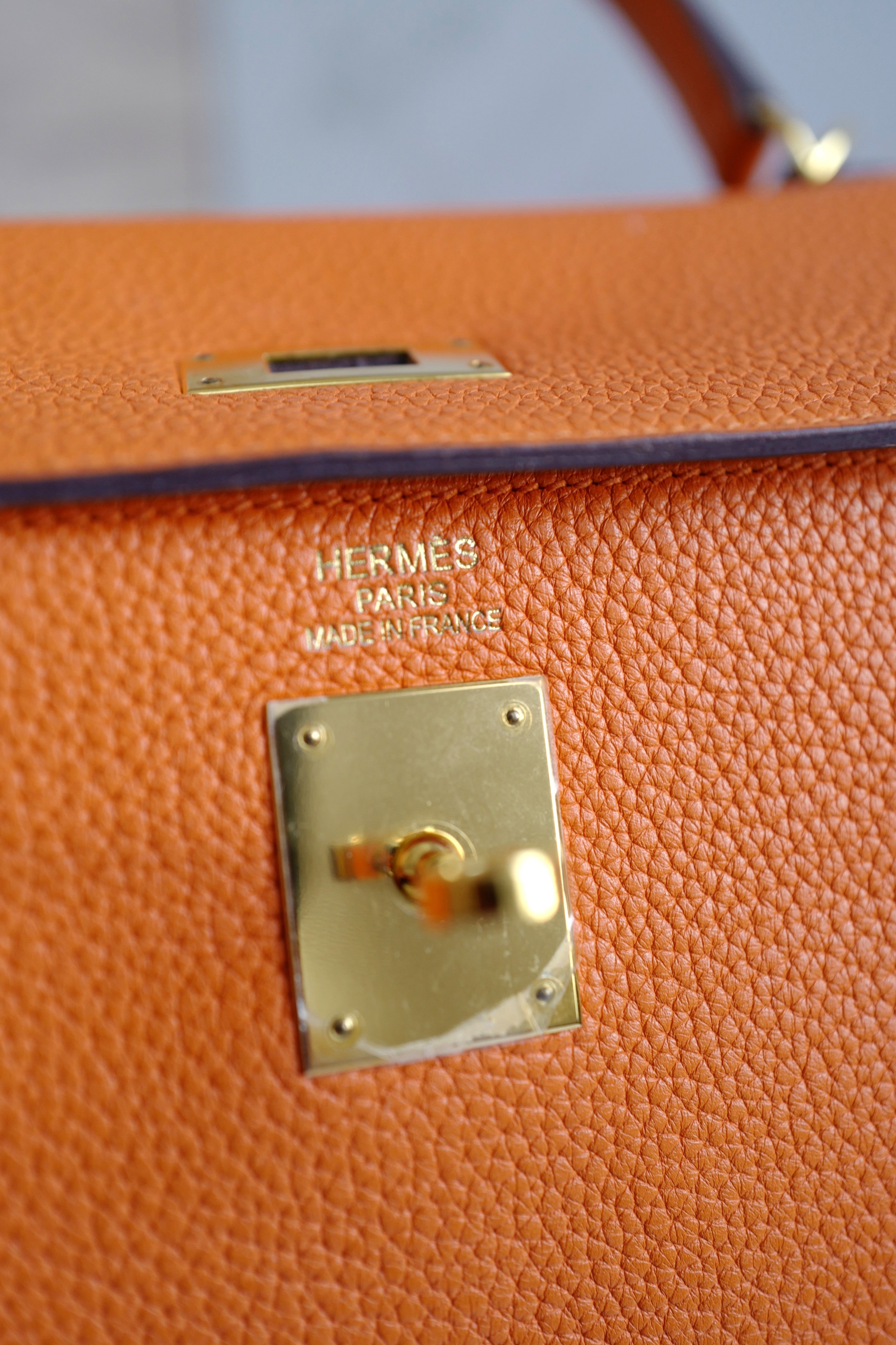 Preowned Hermes Kelly 35 Orange Togo Gold Hardware #P